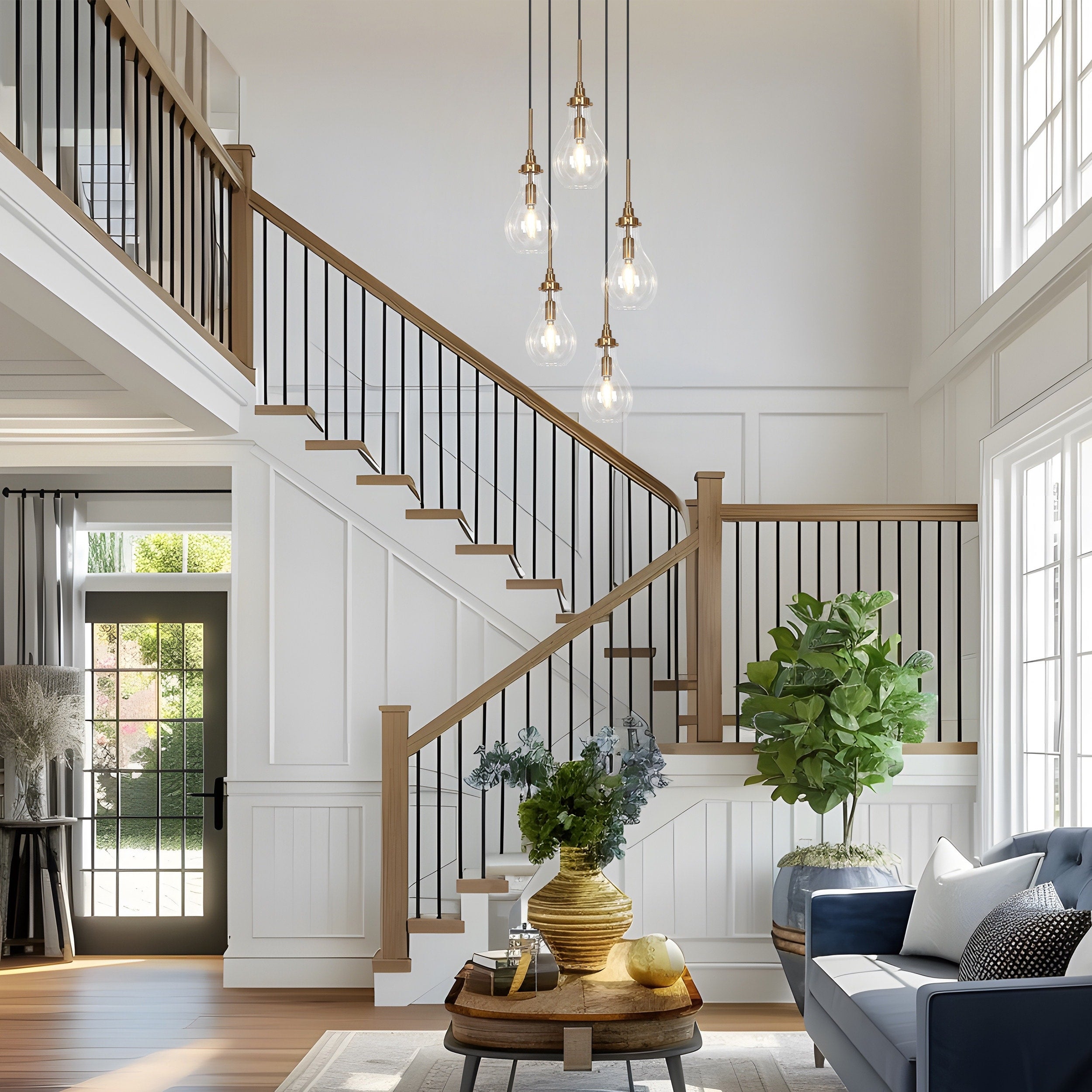 Synia Modern 5-Light Cluster Teardrop Glass Chandelier Stair Entryway Pendant Light for High Ceiling - D15'' x H18.2-74.2'' -
