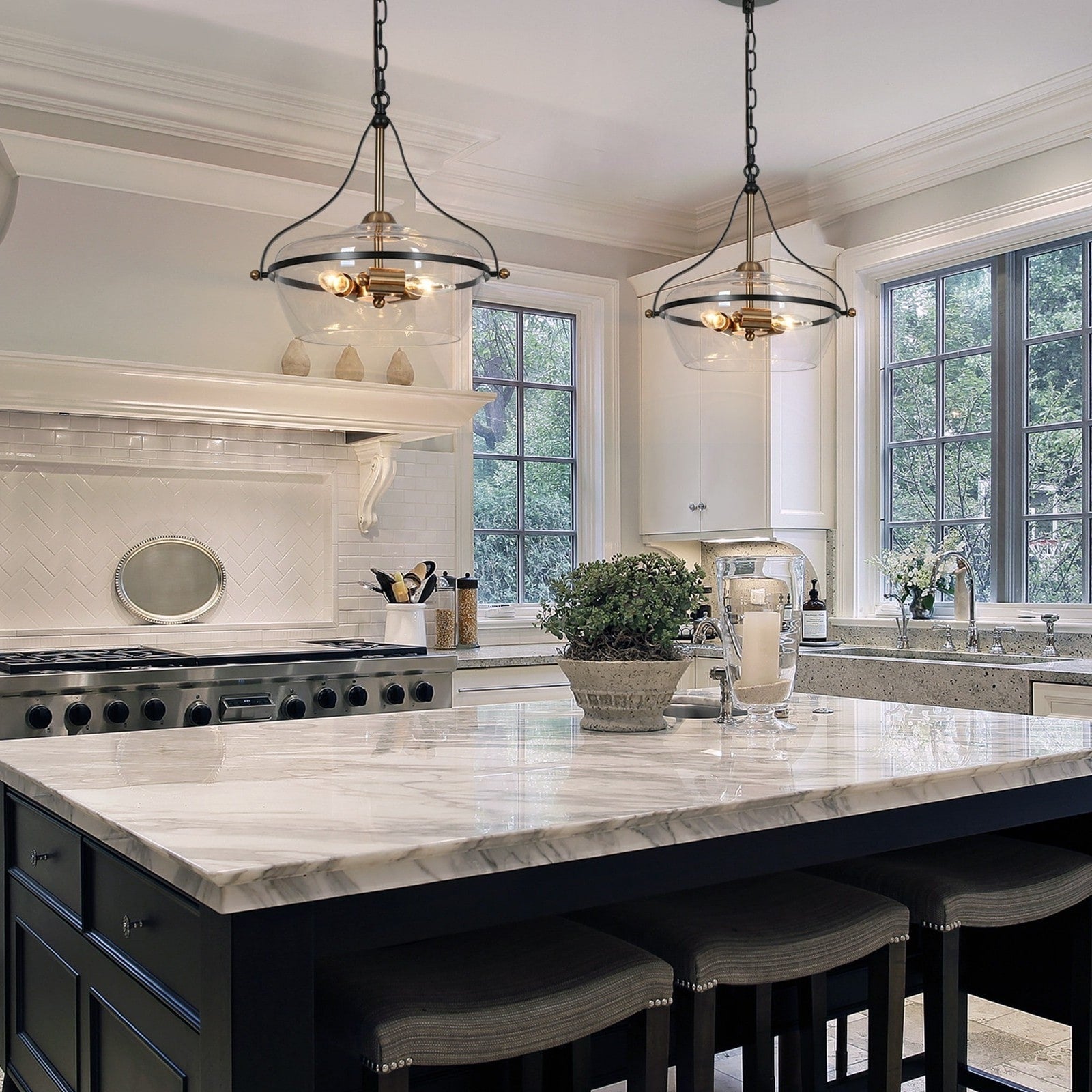 Zelena Modern Farmhouse Black Gold Chandelier 3-Light Glass Pendant Light for Kitchen Island Dining Room -
