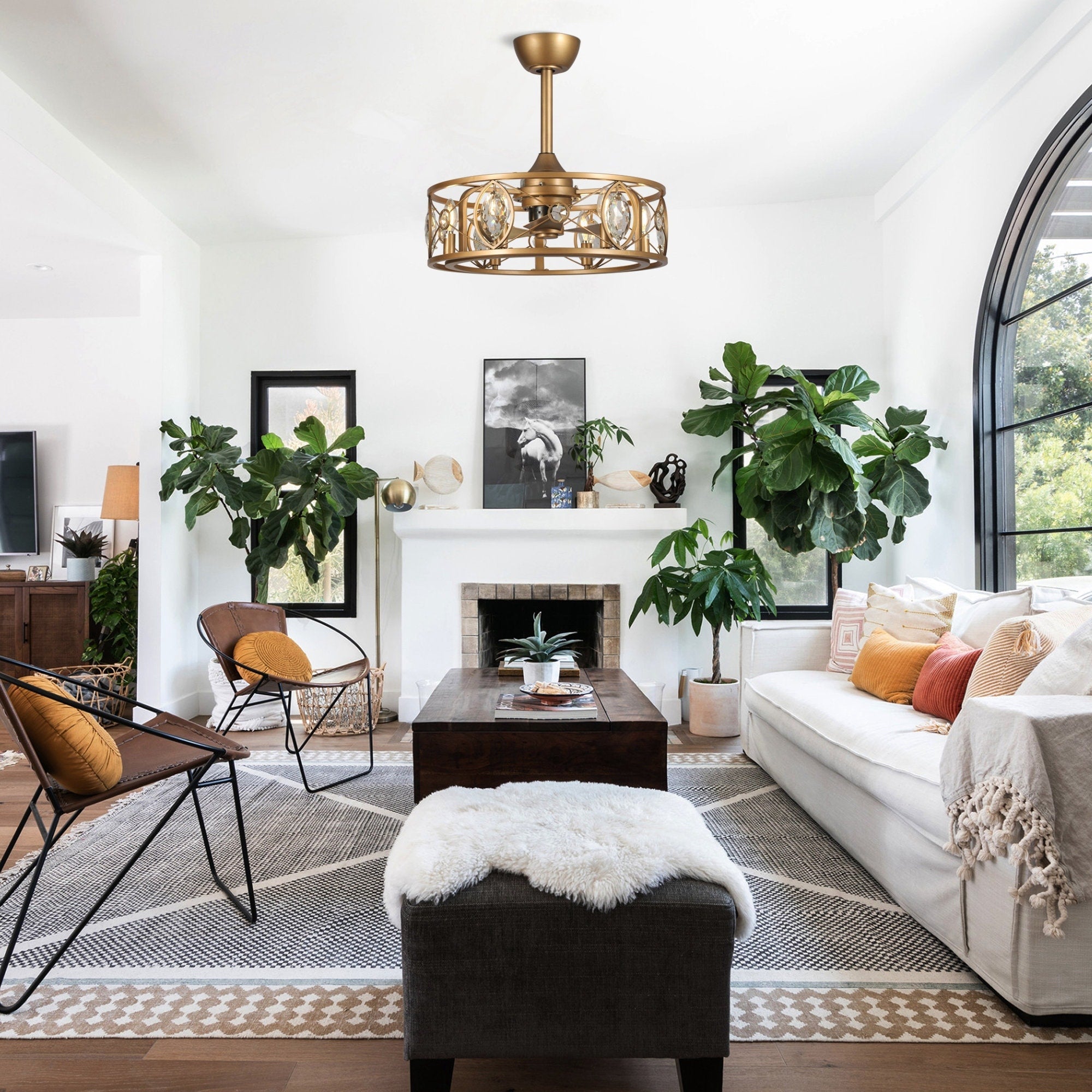 48 Modern Reversible 5-Blade Crystal Flush Mount Ceiling Fan with Remote -