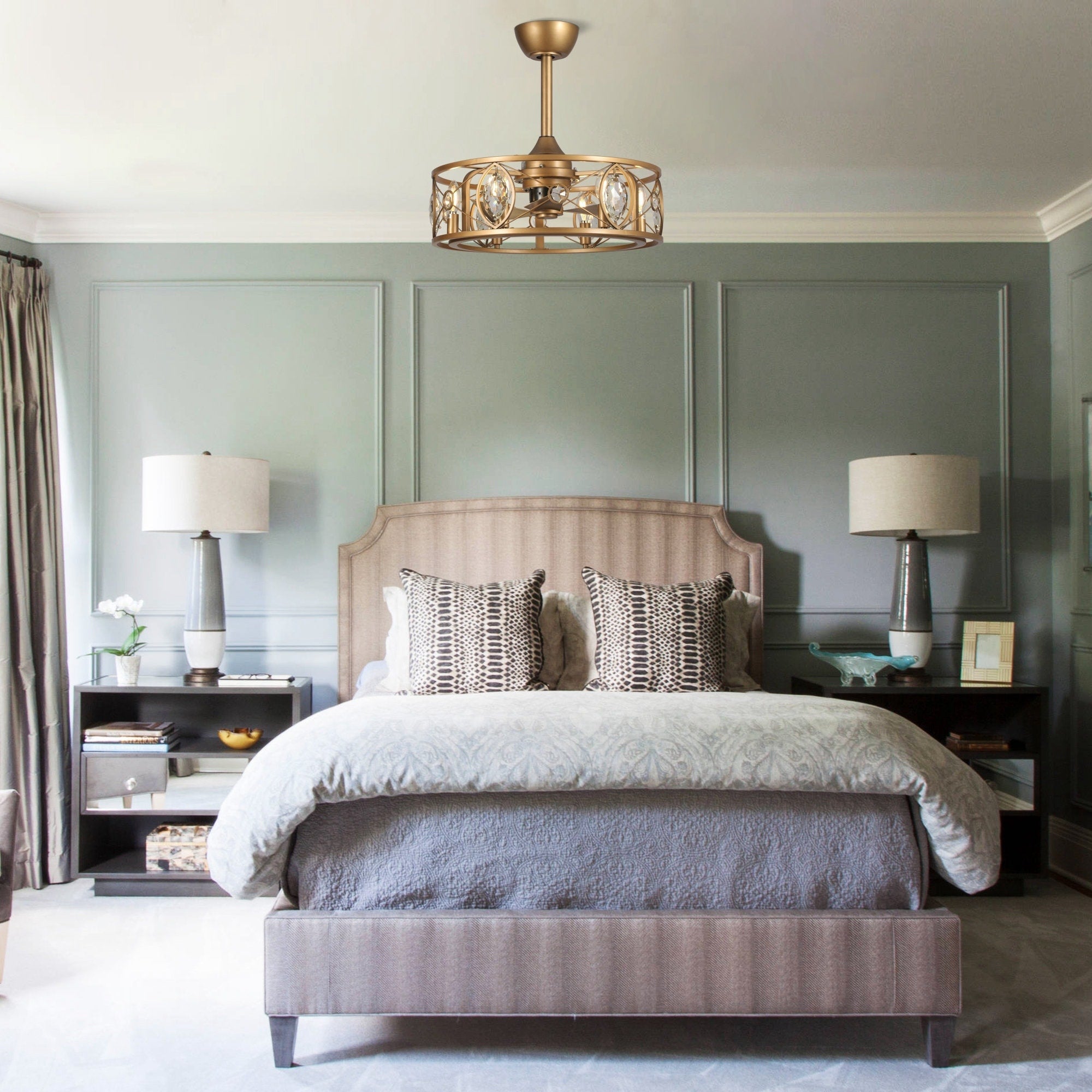 22 Modern Crystal Caged Ceiling Fan Chandelier with Remote -