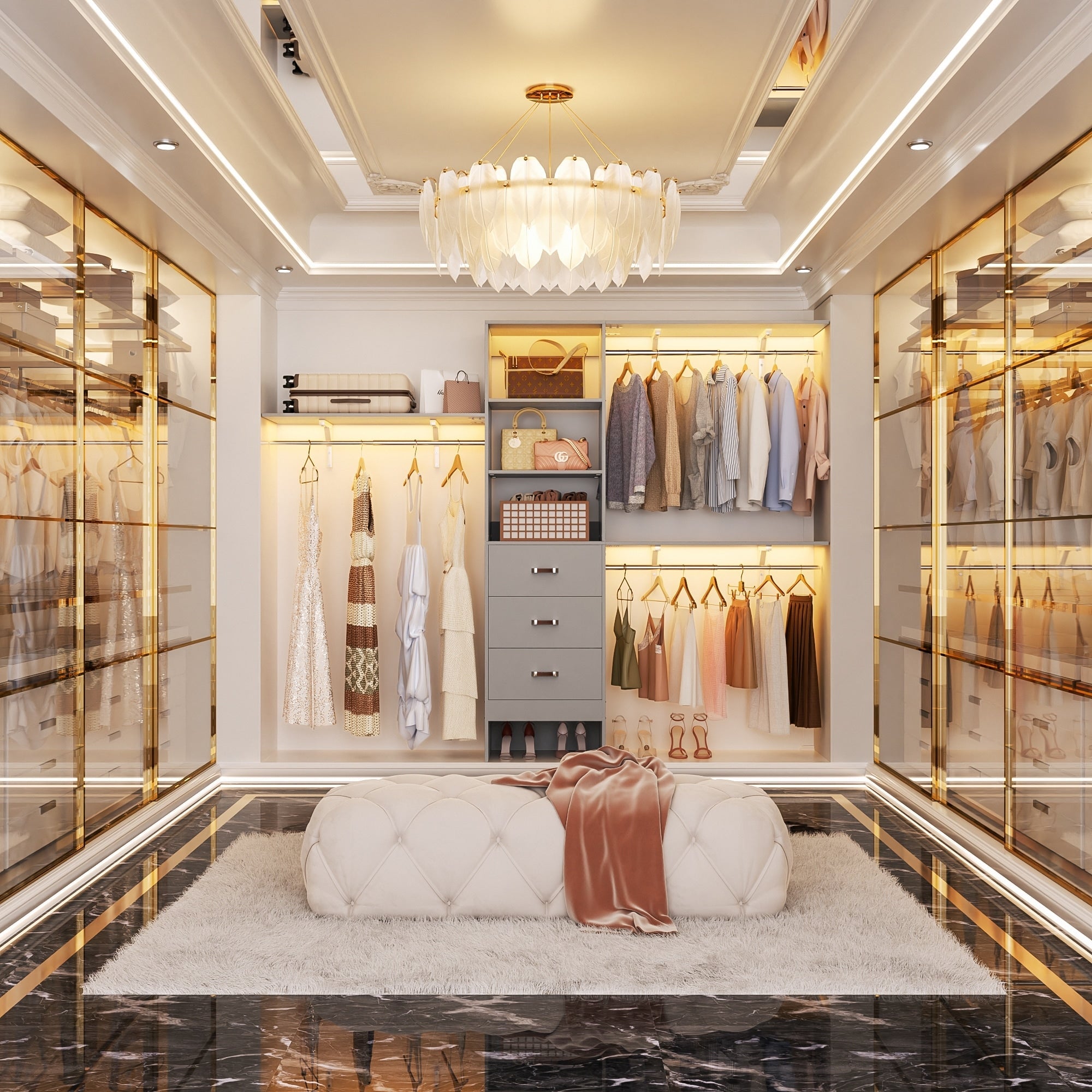Rackcog 120'' Adjustable Closet Organizer with Drawers, Closet System with DIY Shelves for Reach-in and Walk-in Closet -