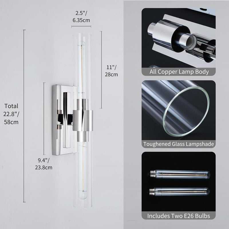 KAYLA Modern Glass Wall Sconces, Indoor Wall Lighting Wall Light Fixtures, Vanity Light with Glass Shade(2-Sets) -