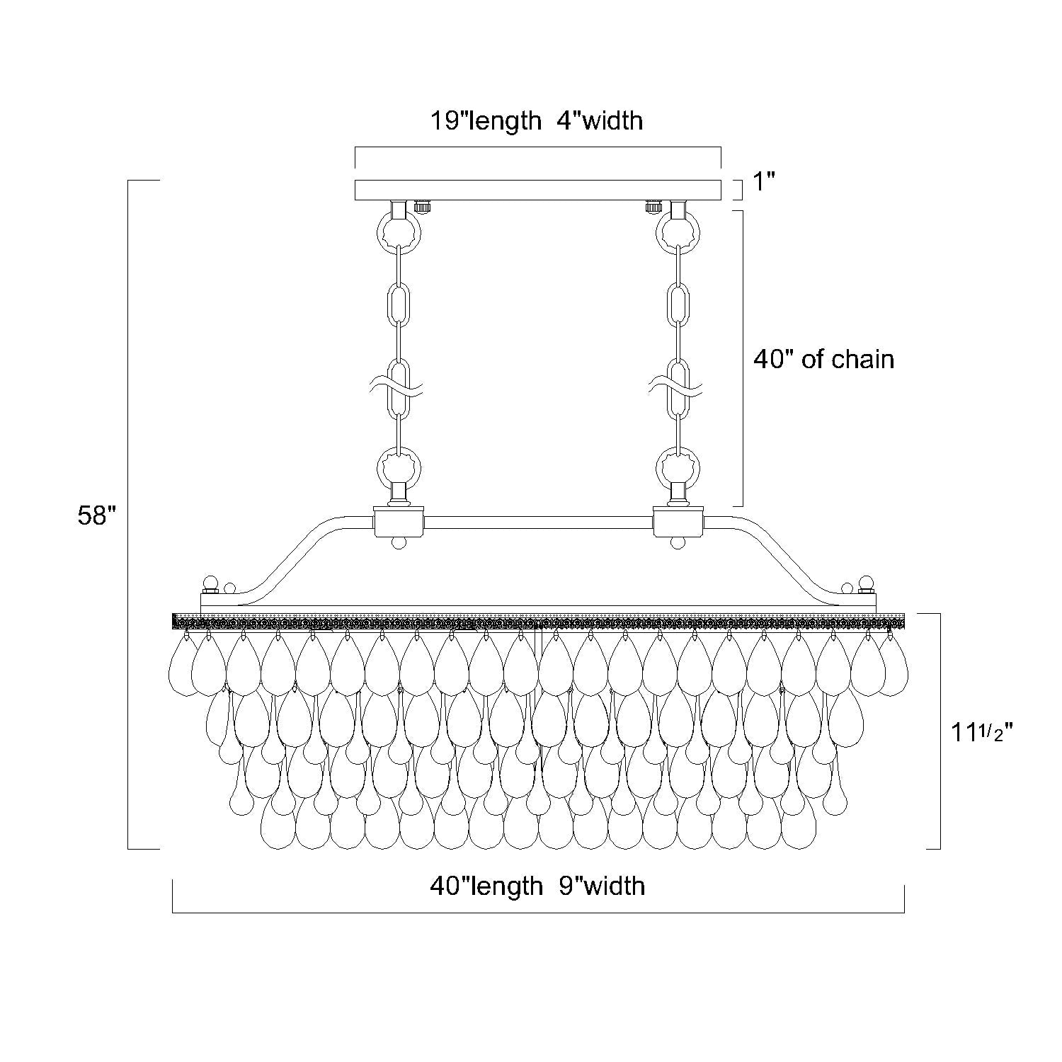 Make a statement in your dining room or kitchen with this opulent Antique Bronze 6-Light Rectangular Kitchen Island Lighting. The fixture features an antique feel that is both traditional and contemporary. Four rows of cascading teardrop crystals filter the six lights to brighten up the room. The 40-inch adjustable chains make it perfect for any room size or situation, and the fixture is dimmable with a dimmer switch and right type of bulbs.