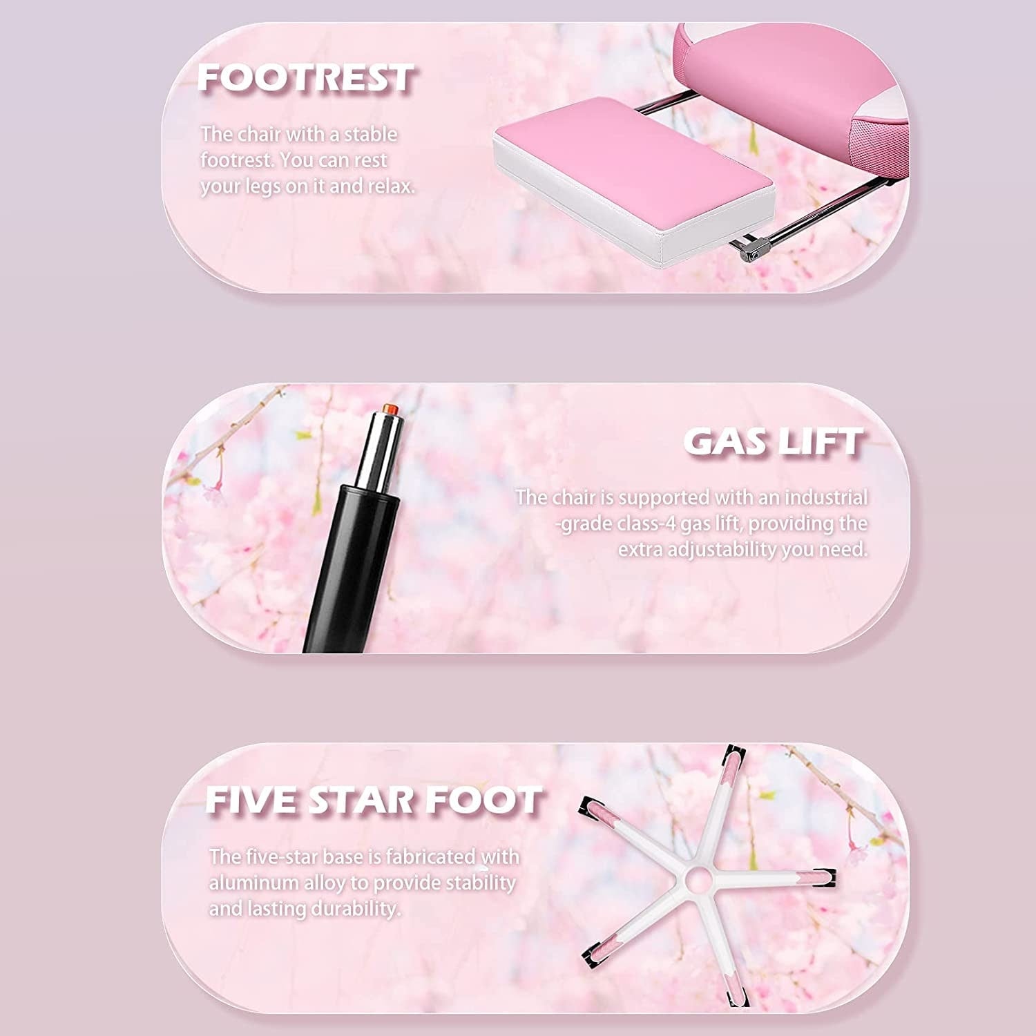 - 🕹️【Safety and Comfort Computer Chair】Class 4 gas lift, durable, reliable and supports up to 400lbs. High load-bearing capacity of 5-star base.Rubber casters, rolling quietly and tested by 1000 miles rolling. This is a gamer chair for adult teens and kids.