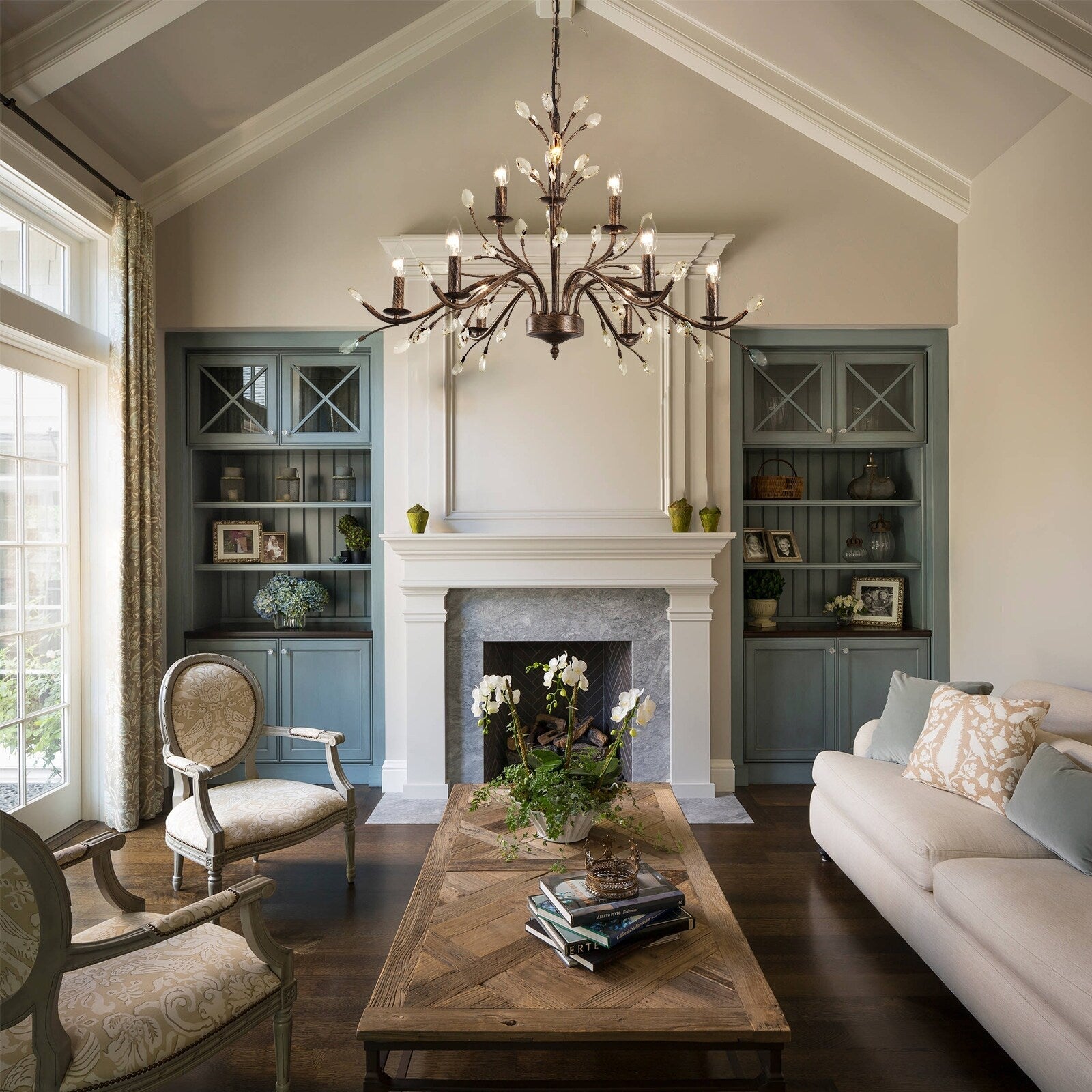 Enhance your home with the timeless elegance of this vintage crystal-accented branch chandelier. Featuring an intricate branch design with candle-style lights and sparkling crystal accents, this crystal chandelier adds a touch of sophistication and luxury to any room. The antique bronze finish or nickel finish and 9/21 lights provide a warm and inviting glow, perfect for larger spaces. Crafted from durable metal with an adjustable chain for customizable height, this chandelier combines style and functionality. Easy to install, it comes with all necessary hardware and detailed instructions.Transform your space with this stunning chandelier, perfect for creating a warm and inviting ambiance in any room.