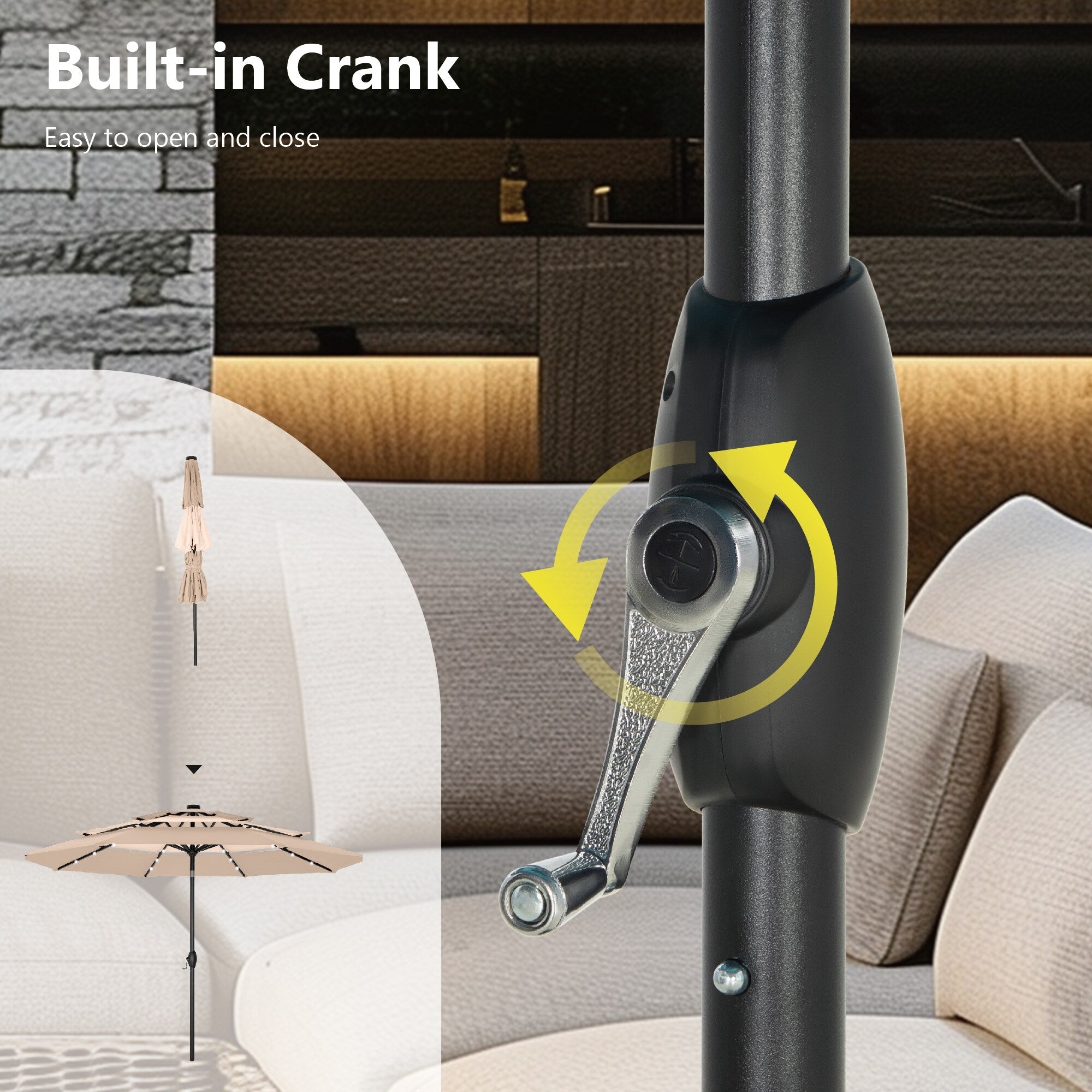 Easy Operation - Crank designed for easier opening and closing. With the auto-tilt mechanism, it's super easy for you to adjust the shading angle, providing you with a full protection from the sun or wind all the time