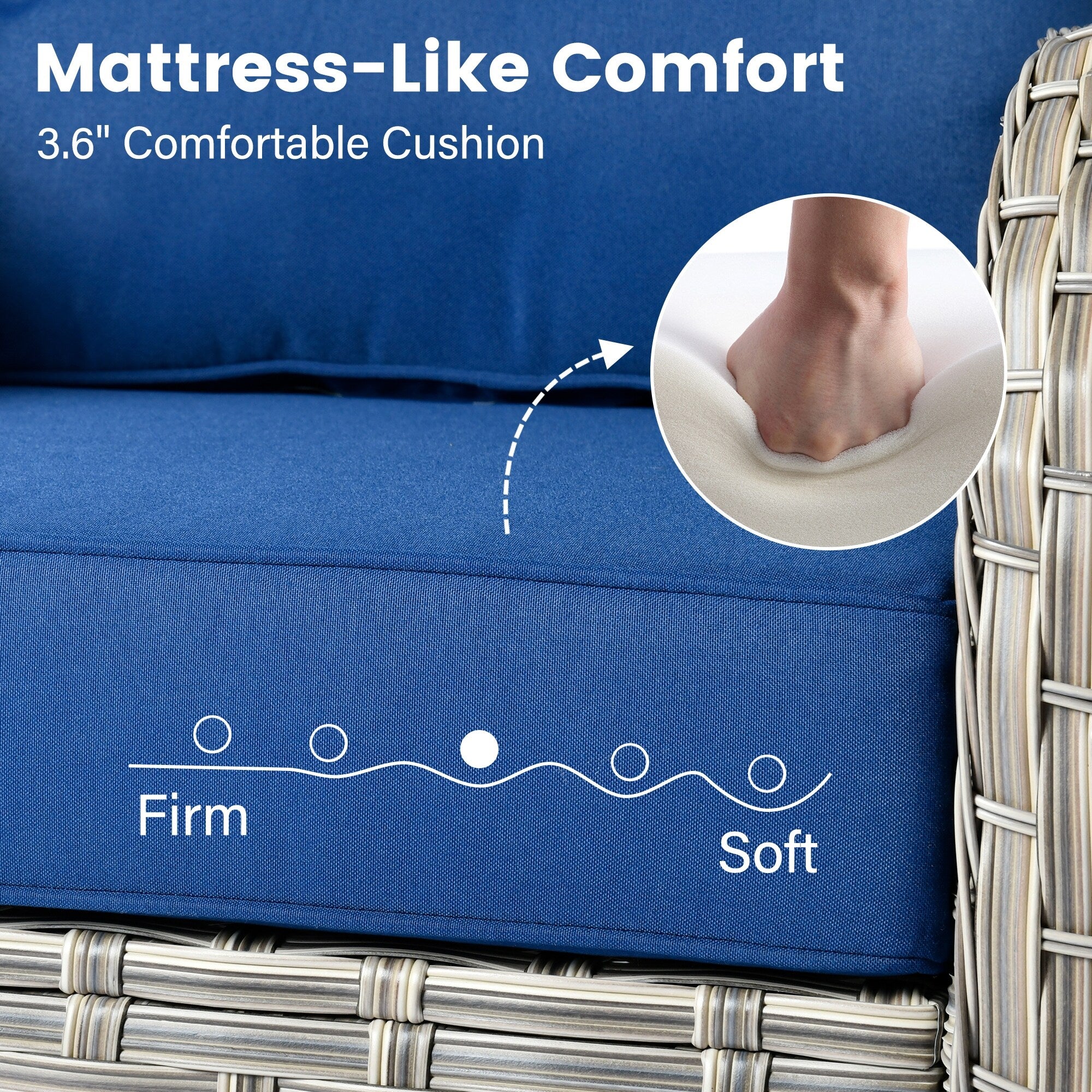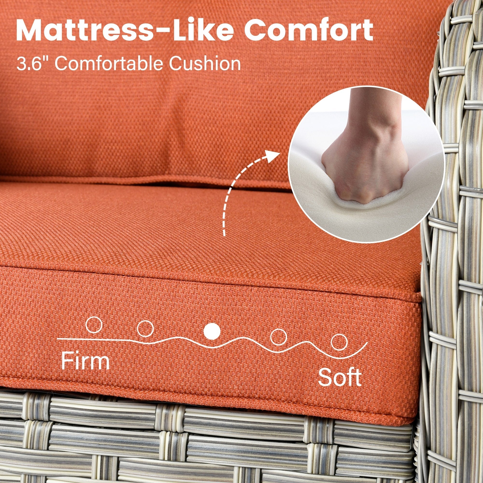 Elevate your outdoor living experience with this Premium Outdoor Wicker Furniture Set, now including a stylish Metal Fire Pit, designed to combine style, comfort, and functionality. Perfect for family gatherings, outdoor parties, or quiet personal relaxation, this furniture set will provide the ideal setting for any occasion.