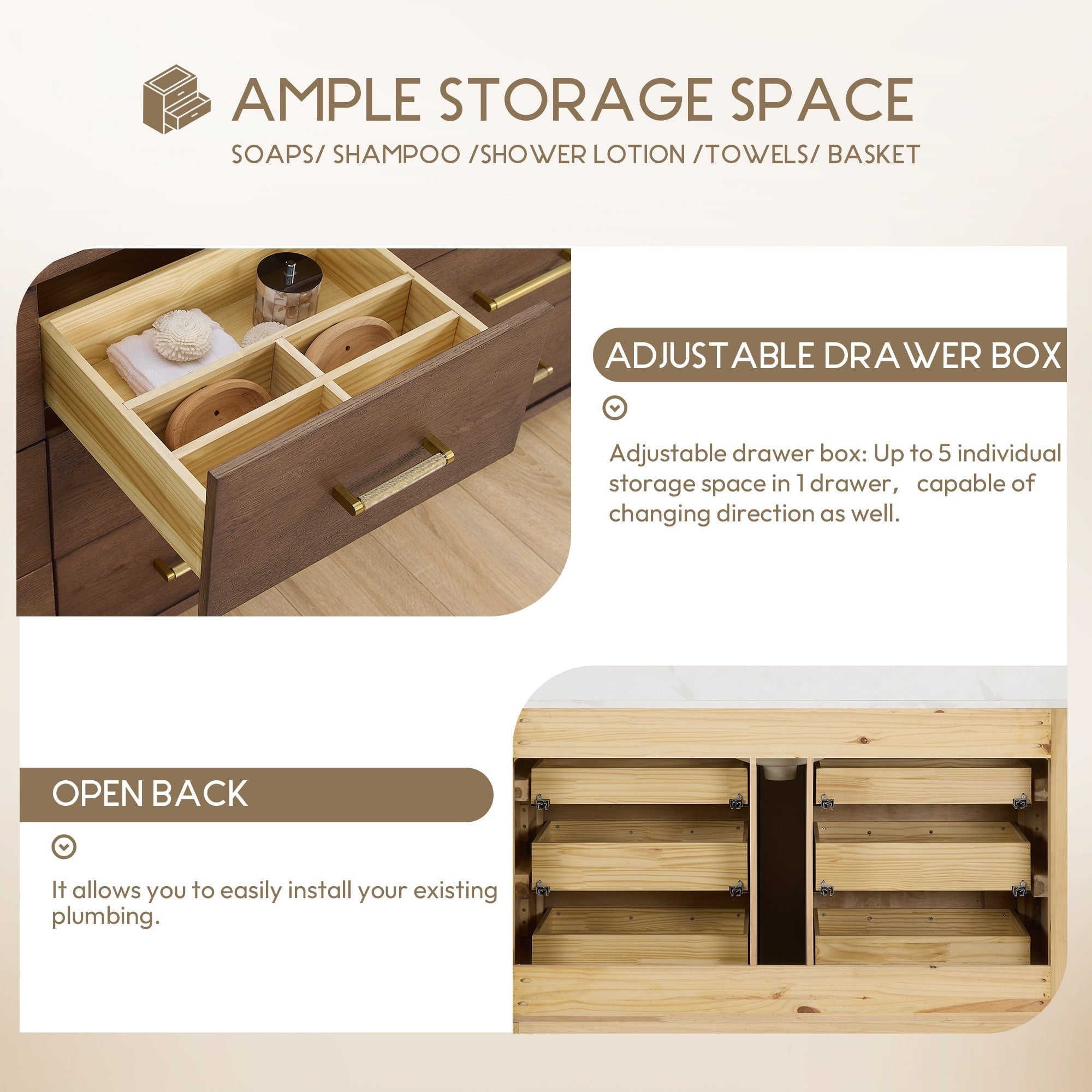 72 Inch - Six sturdy, soft-closing dovetail drawers feature built-in partitions for easy access to all your toiletries.
