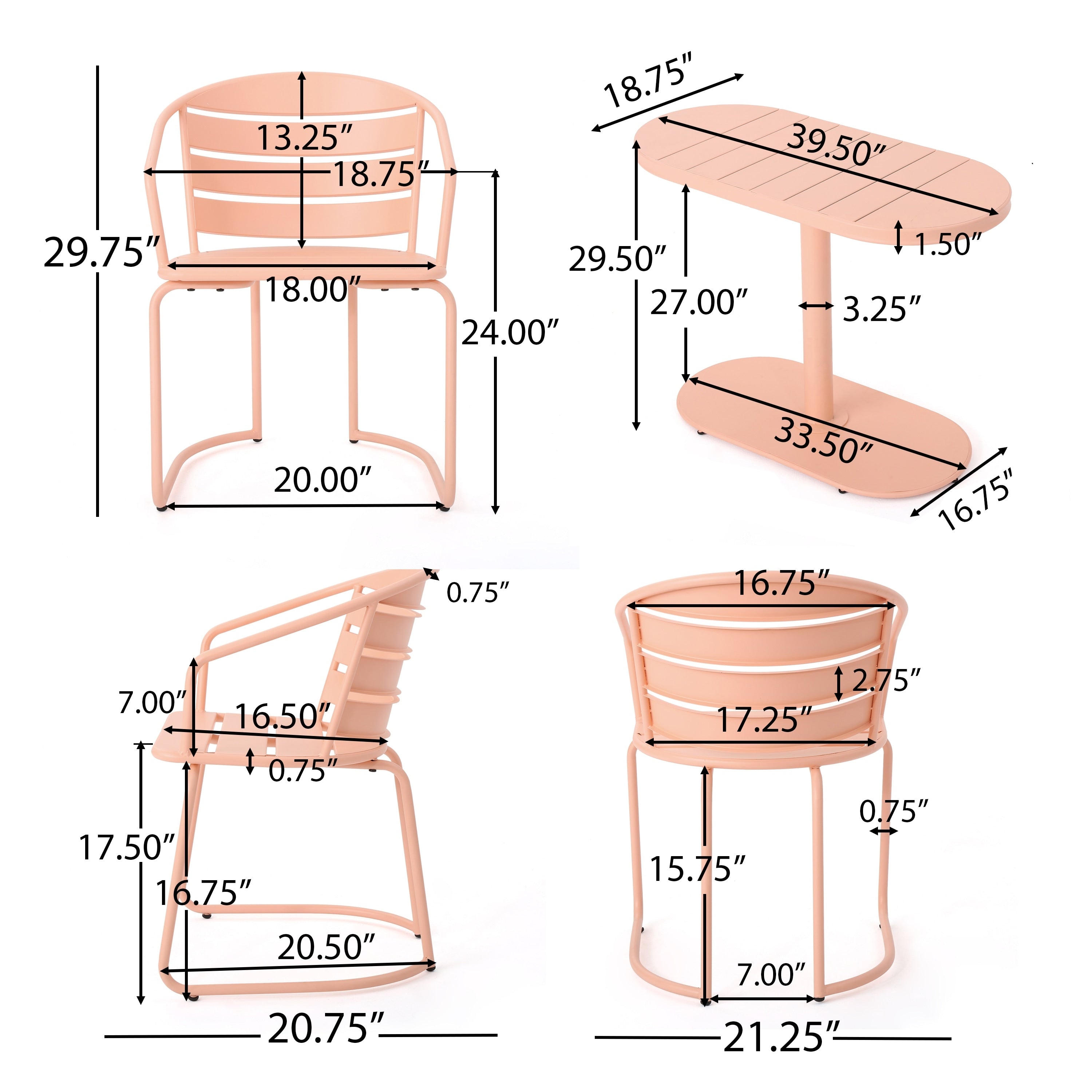 - Table Dimensions: 18.75 inches deep x 39.50 inches wide x 29.50 inches high